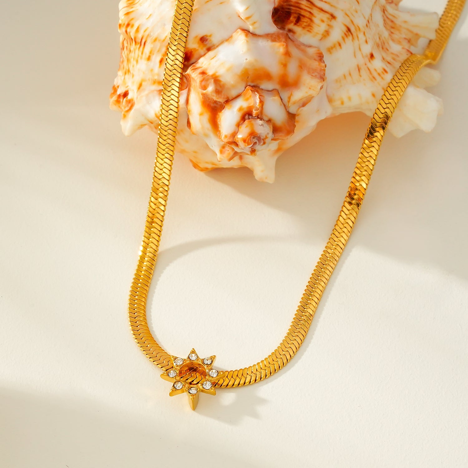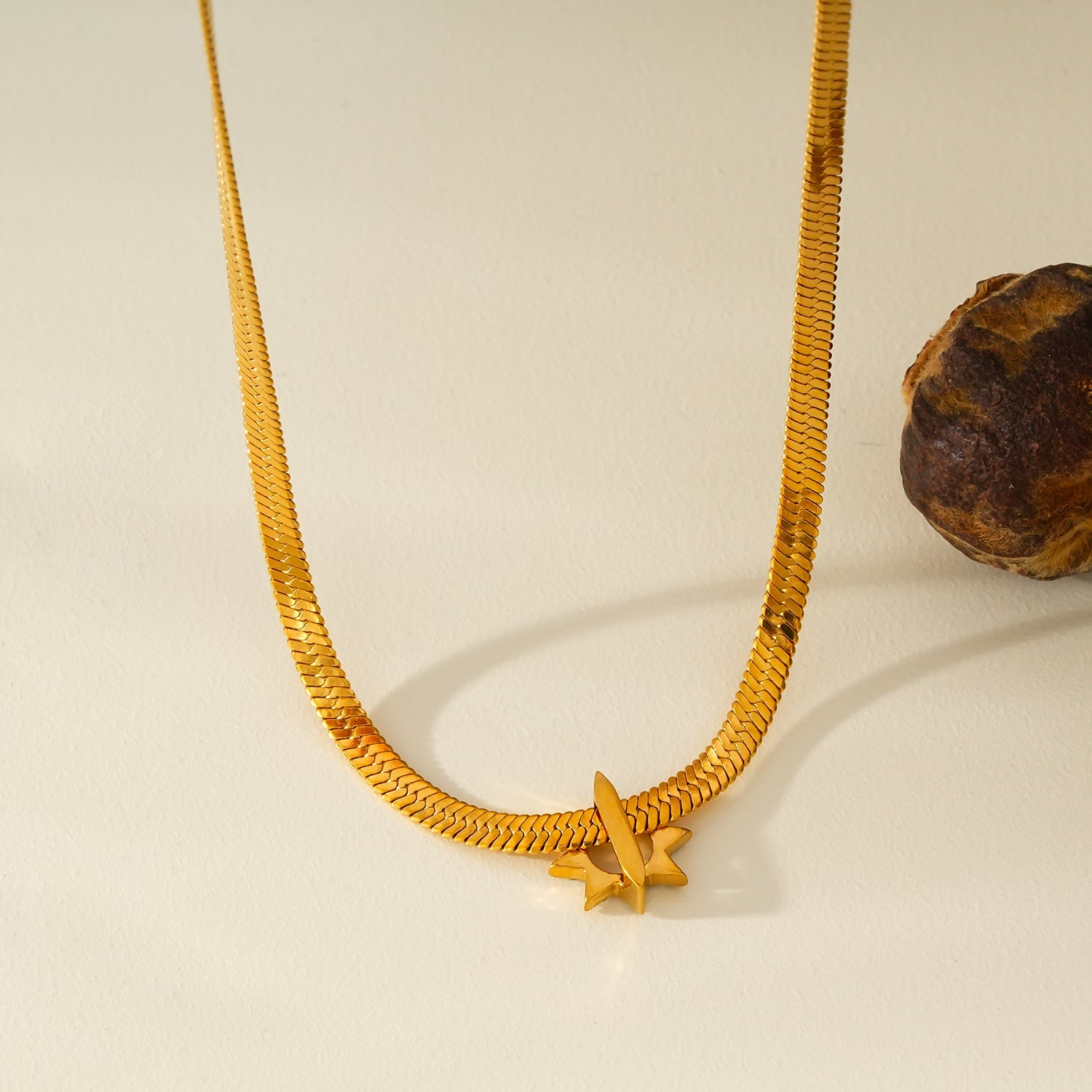 AGULHAS Gold: Celestial Elegance - Snake Skin Chain Necklace with Zirconia Embedded Star Charm